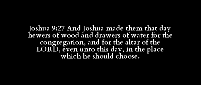 Joshua 9:27 And Joshua made them that day hewers of wood and drawers of water for the congregation, and for the altar of the LORD, even unto this day, in the place which he should choose.