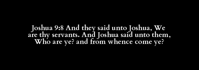 Joshua 9:8 And they said unto Joshua, We are thy servants. And Joshua said unto them, Who are ye? and from whence come ye?