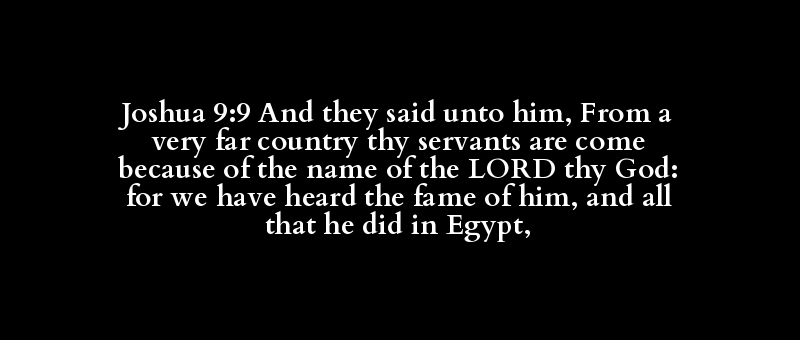 Joshua 9:9 And they said unto him, From a very far country thy servants are come because of the name of the LORD thy God: for we have heard the fame of him, and all that he did in Egypt,