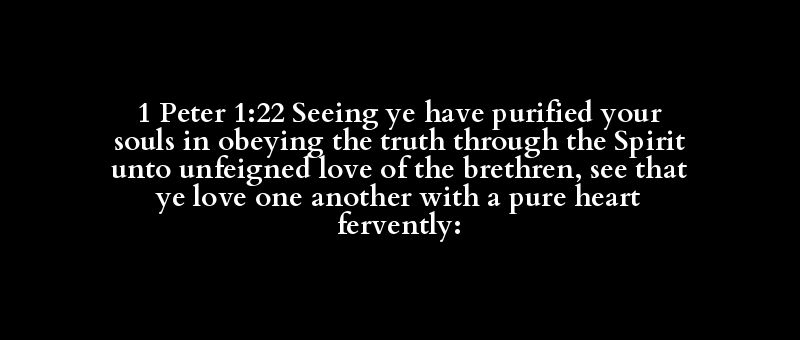 1 Peter 1:22 Seeing ye have purified your souls in obeying the truth through the Spirit unto unfeigned love of the brethren, see that ye love one another with a pure heart fervently: