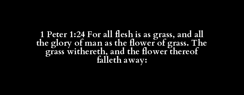 1 Peter 1:24 For all flesh is as grass, and all the glory of man as the flower of grass. The grass withereth, and the flower thereof falleth away: