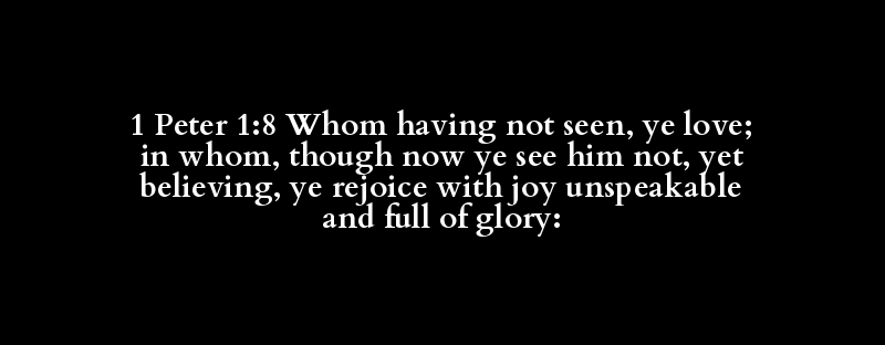1 Peter 1:8 Whom having not seen, ye love; in whom, though now ye see him not, yet believing, ye rejoice with joy unspeakable and full of glory:
