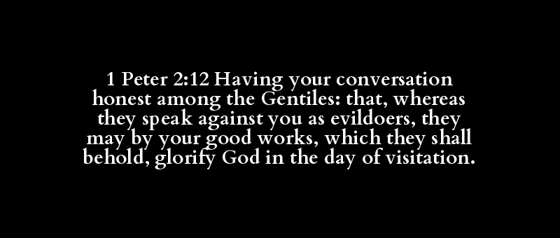 | [echo] | [humon] | [anastrophe] | [kalos] | [en] | [ethnos] | [hina] | [hos] | [en] | [katalaleo] | [humon] | [hos] | [kakopoios] | [doxazo] | [ek] | [kalos] | [ergon] | [epopteuo] | [doxazo] | [theos] | [en] | [hemera] | [episkope] |