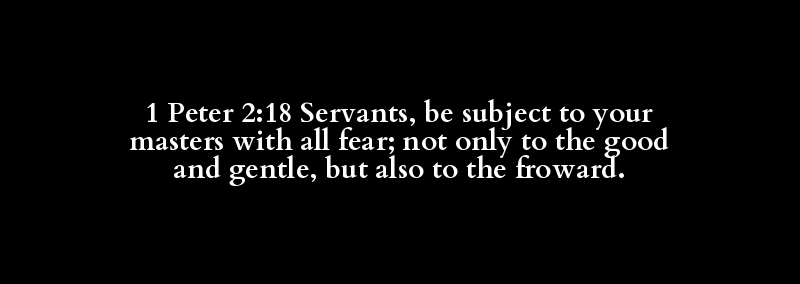 1 Peter 2:18 Servants, be subject to your masters with all fear; not only to the good and gentle, but also to the froward.