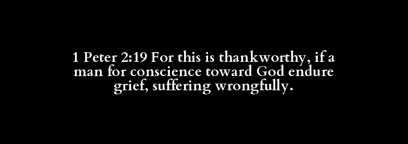 1 Peter 2:19 For this is thankworthy, if a man for conscience toward God endure grief, suffering wrongfully.