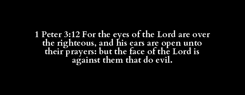 1 Peter 3:12 For the eyes of the Lord are over the righteous, and his ears are open unto their prayers: but the face of the Lord is against them that do evil.