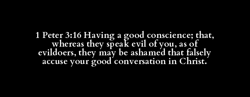 1 Peter 3:16 Having a good conscience; that, whereas they speak evil of you, as of evildoers, they may be ashamed that falsely accuse your good conversation in Christ.