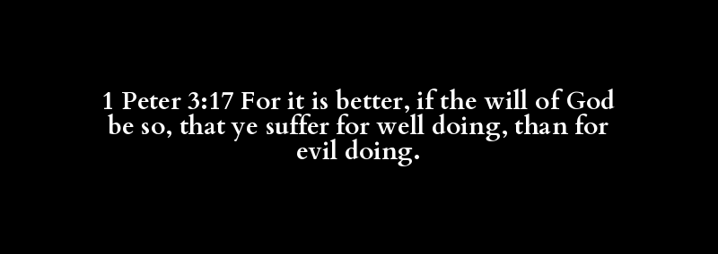 1 Peter 3:17 For it is better, if the will of God be so, that ye suffer for well doing, than for evil doing.