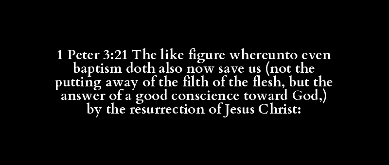1 Peter 3:21 The like figure whereunto even baptism doth also now save us (not the putting away of the filth of the flesh, but the answer of a good conscience toward God,) by the resurrection of Jesus Christ: