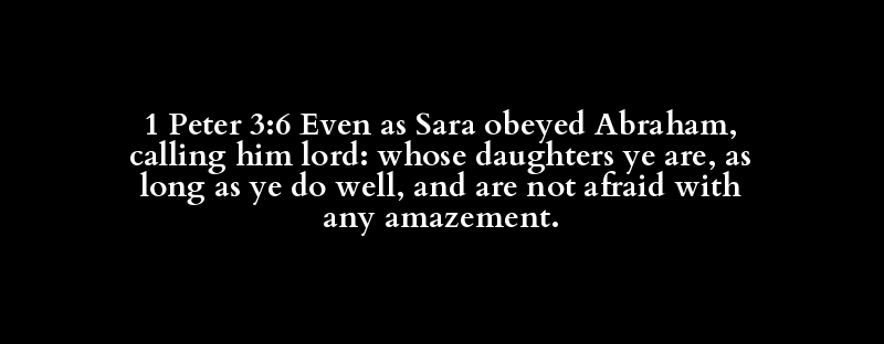 1 Peter 3:6 Even as Sara obeyed Abraham, calling him lord: whose daughters ye are, as long as ye do well, and are not afraid with any amazement.