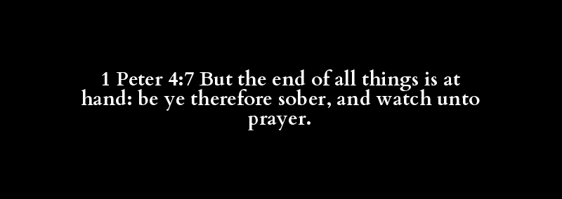 1 Peter 4:7 But the end of all things is at hand: be ye therefore sober, and watch unto prayer.