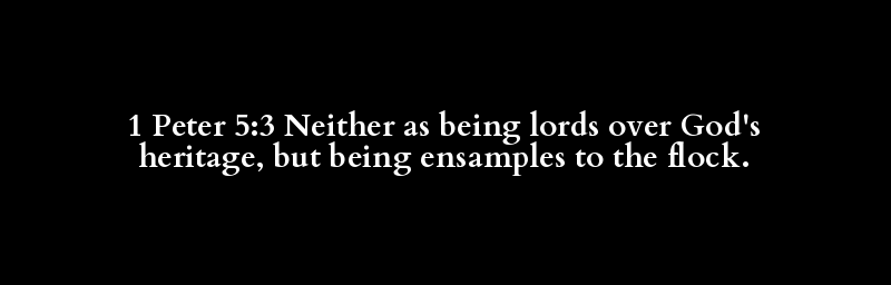 1 Peter 5:3 Neither as being lords over God's heritage, but being ensamples to the flock.
