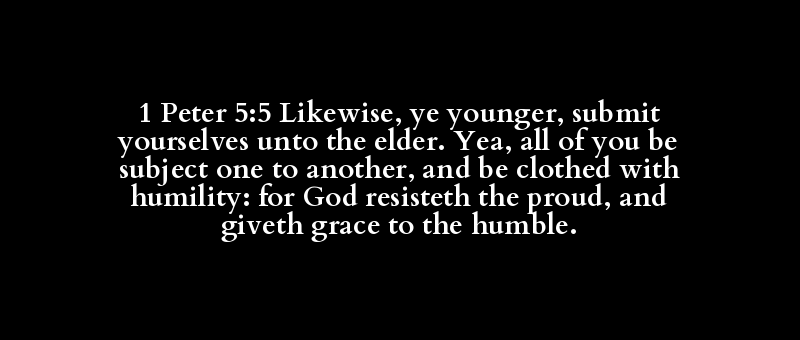 1 Peter 5:5 Likewise, ye younger, submit yourselves unto the elder. Yea, all of you be subject one to another, and be clothed with humility: for God resisteth the proud, and giveth grace to the humble.