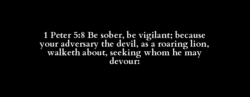 1 Peter 5:8 Be sober, be vigilant; because your adversary the devil, as a roaring lion, walketh about, seeking whom he may devour:
