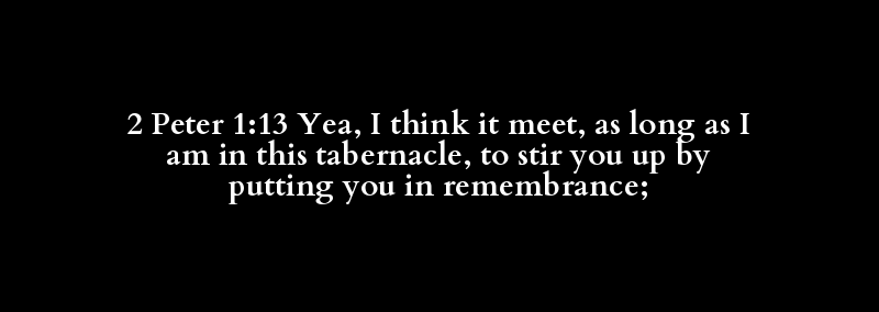 2 Peter 1:13 Yea, I think it meet, as long as I am in this tabernacle, to stir you up by putting you in remembrance;