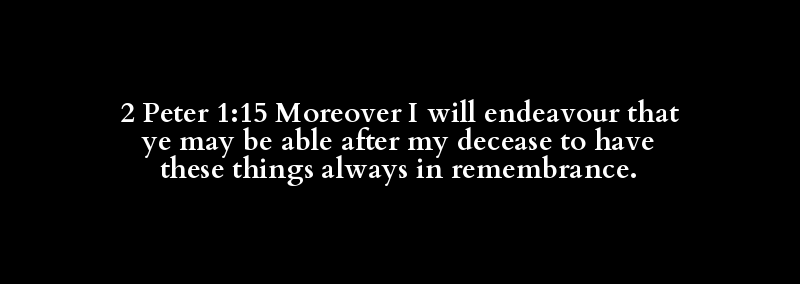 2 Peter 1:15 Moreover I will endeavour that ye may be able after my decease to have these things always in remembrance.