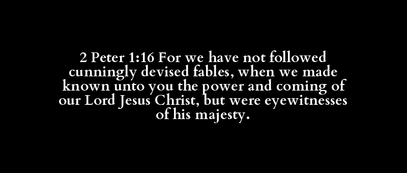 2 Peter 1:16 For we have not followed cunningly devised fables, when we made known unto you the power and coming of our Lord Jesus Christ, but were eyewitnesses of his majesty.