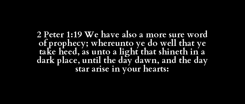 2 Peter 1:19 We have also a more sure word of prophecy; whereunto ye do well that ye take heed, as unto a light that shineth in a dark place, until the day dawn, and the day star arise in your hearts: