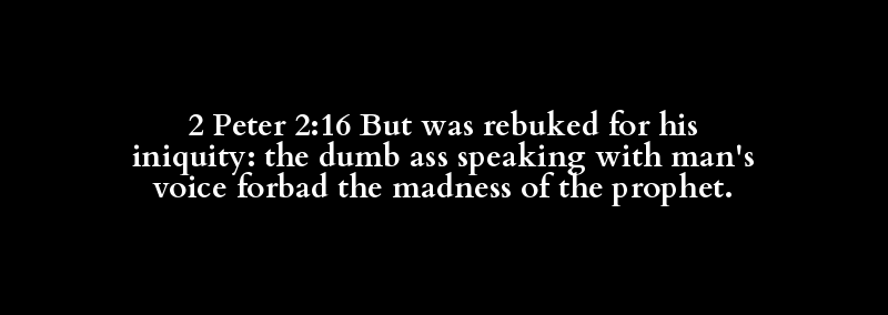 2 Peter 2:16 But was rebuked for his iniquity: the dumb ass speaking with man's voice forbad the madness of the prophet.