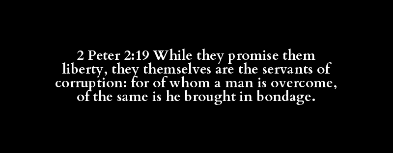 2 Peter 2:19 While they promise them liberty, they themselves are the servants of corruption: for of whom a man is overcome, of the same is he brought in bondage.