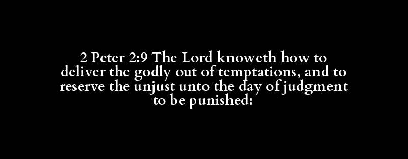 2 Peter 2:9 The Lord knoweth how to deliver the godly out of temptations, and to reserve the unjust unto the day of judgment to be punished:
