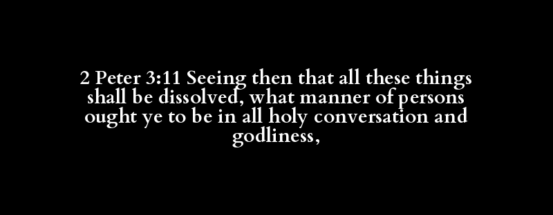 2 Peter 3:11 Seeing then that all these things shall be dissolved, what manner of persons ought ye to be in all holy conversation and godliness,