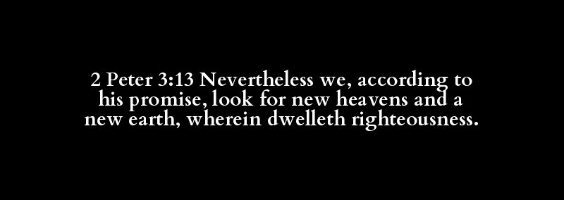 2 Peter 3:13 Nevertheless we, according to his promise, look for new heavens and a new earth, wherein dwelleth righteousness.