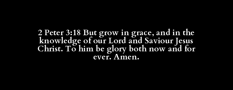 2 Peter 3:18 But grow in grace, and in the knowledge of our Lord and Saviour Jesus Christ. To him be glory both now and for ever. Amen.