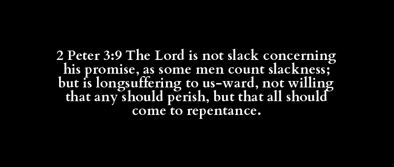 2 Peter 3:9 The Lord is not slack concerning his promise, as some men count slackness; but is longsuffering to us-ward, not willing that any should perish, but that all should come to repentance.