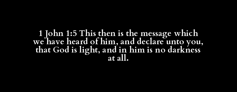 1 John 1:5 This then is the message which we have heard of him, and declare unto you, that God is light, and in him is no darkness at all.