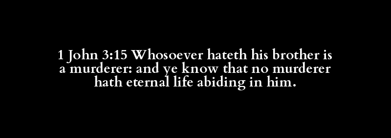 1 John 3:15 Whosoever hateth his brother is a murderer: and ye know that no murderer hath eternal life abiding in him.