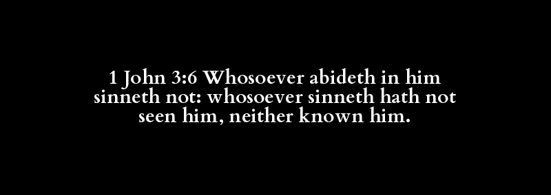 1 John 3:6 Whosoever abideth in him sinneth not: whosoever sinneth hath not seen him, neither known him.