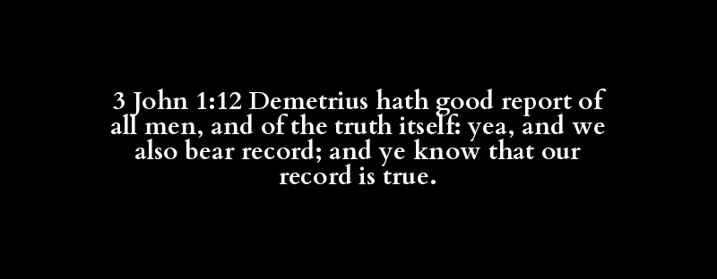 | Δημήτριος | μαρτυρέω | ὑπό | πᾶς | καί | ὑπό | ἀλήθεια | αὐτός | δέ | καί | ἡμεῖς | μαρτυρέω | καί | εἴδω | ὅτι | ἡμῶν | μαρτυρία | ἐστί | ἀληθής |