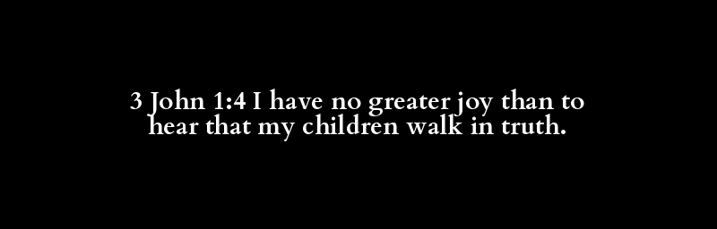 3 John 1:4 I have no greater joy than to hear that my children walk in truth.
