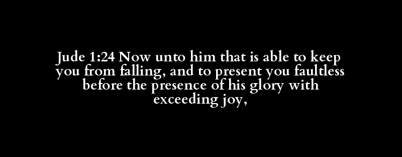 Jude 1:24 Now unto him that is able to keep you from falling, and to present you faultless before the presence of his glory with exceeding joy,