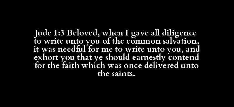 Jude 1:3 Beloved, when I gave all diligence to write unto you of the common salvation, it was needful for me to write unto you, and exhort you that ye should earnestly contend for the faith which was once delivered unto the saints.