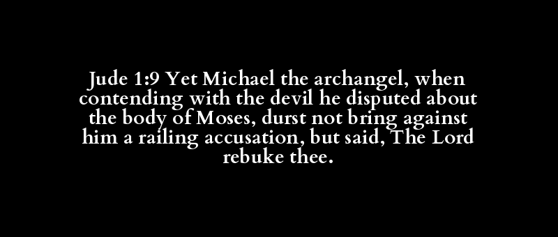 Jude 1:9 Yet Michael the archangel, when contending with the devil he disputed about the body of Moses, durst not bring against him a railing accusation, but said, The Lord rebuke thee.