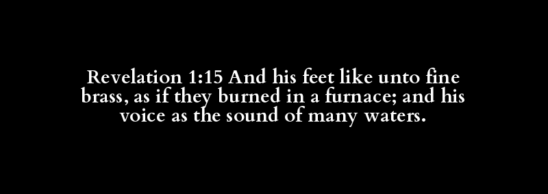 Revelation 1:15 And his feet like unto fine brass, as if they burned in a furnace; and his voice as the sound of many waters.
