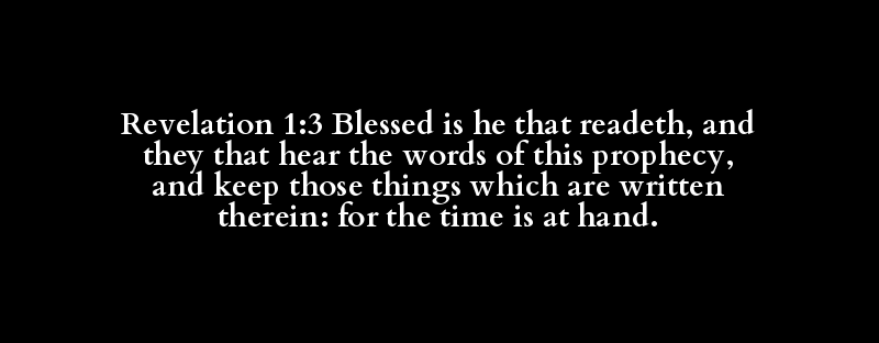Revelation 1:3 Blessed is he that readeth, and they that hear the words of this prophecy, and keep those things which are written therein: for the time is at hand.