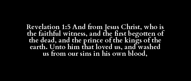 Revelation 1:5 And from Jesus Christ, who is the faithful witness, and the first begotten of the dead, and the prince of the kings of the earth. Unto him that loved us, and washed us from our sins in his own blood,