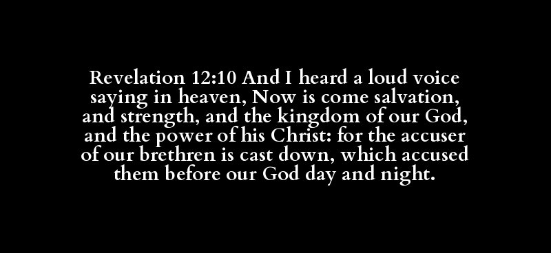 Revelation 12:10 And I heard a loud voice saying in heaven, Now is come salvation, and strength, and the kingdom of our God, and the power of his Christ: for the accuser of our brethren is cast down, which accused them before our God day and night.