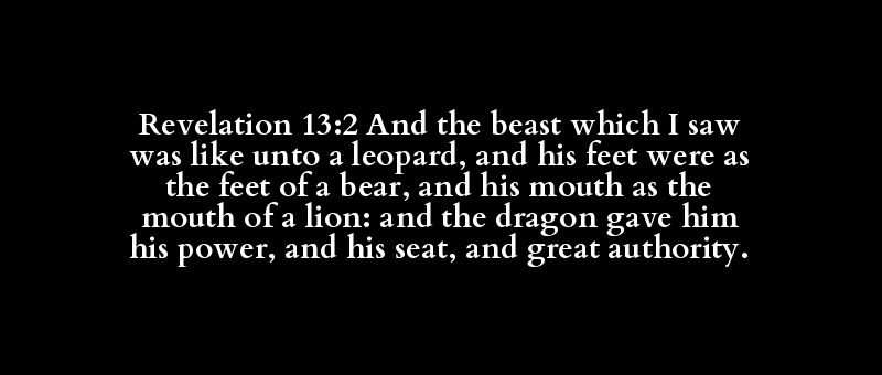 | καί | θηρίον | ὅς | εἴδω | ἦν | ὅμοιος | πάρδαλις | καί | αὐτός | πούς | ὡς | ἄρκτος | καί | αὐτός | στόμα | ὡς | στόμα | λέων | καί | δράκων | δίδωμι | αὐτός | αὐτός | δύναμις | καί | αὐτός | θρόνος | καί | μέγας | ἐξουσία |