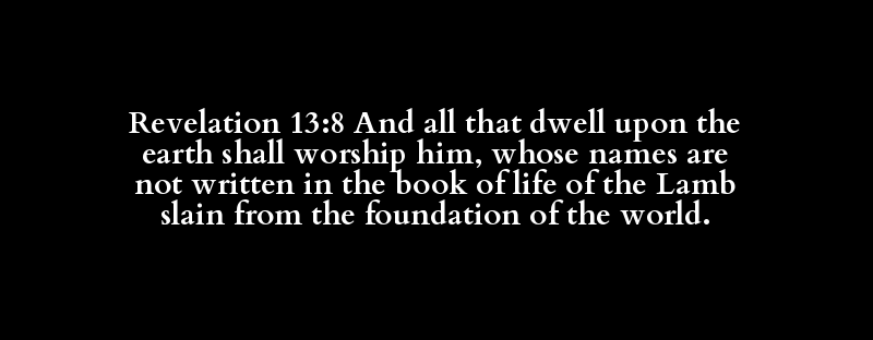 Revelation 13:8 And all that dwell upon the earth shall worship him, whose names are not written in the book of life of the Lamb slain from the foundation of the world.