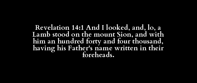 Revelation 14:1 And I looked, and, lo, a Lamb stood on the mount Sion, and with him an hundred forty and four thousand, having his Father's name written in their foreheads.
