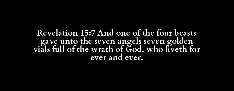 Revelation 15:7 And one of the four beasts gave unto the seven angels seven golden vials full of the wrath of God, who liveth for ever and ever.