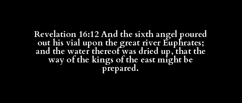 Revelation 16:12 And the sixth angel poured out his vial upon the great river Euphrates; and the water thereof was dried up, that the way of the kings of the east might be prepared.