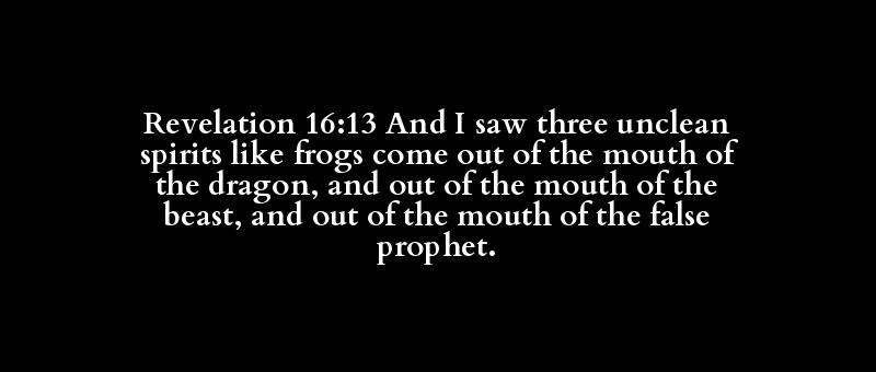 Revelation 16:13 And I saw three unclean spirits like frogs come out of the mouth of the dragon, and out of the mouth of the beast, and out of the mouth of the false prophet.