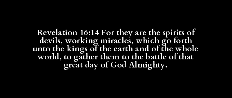 Revelation 16:14 For they are the spirits of devils, working miracles, which go forth unto the kings of the earth and of the whole world, to gather them to the battle of that great day of God Almighty.