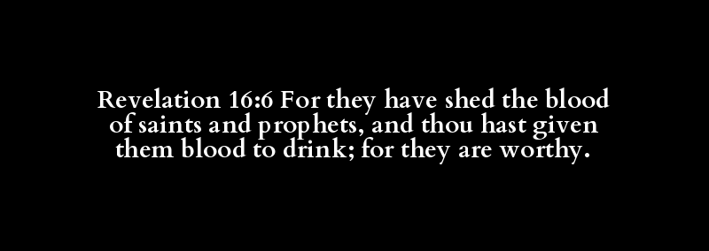 Revelation 16:6 For they have shed the blood of saints and prophets, and thou hast given them blood to drink; for they are worthy.