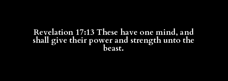 Revelation 17:13 These have one mind, and shall give their power and strength unto the beast.